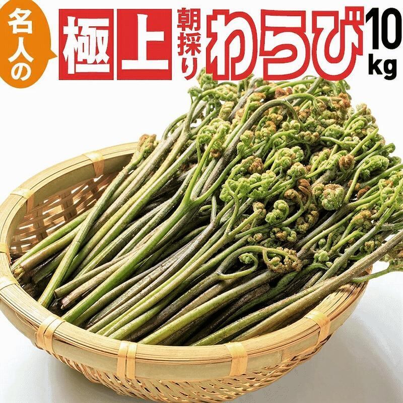 予約販売 天然山菜 あく抜きわらび/10Kg 自然の恵み 山形県飯豊町産 送料無料