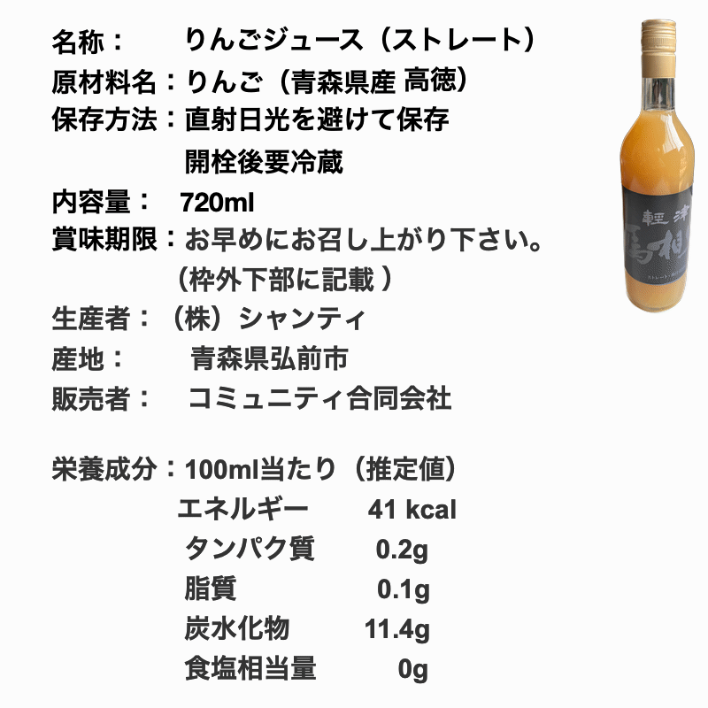 ■品 名 :100%ストレートりんごジュース(無添加)