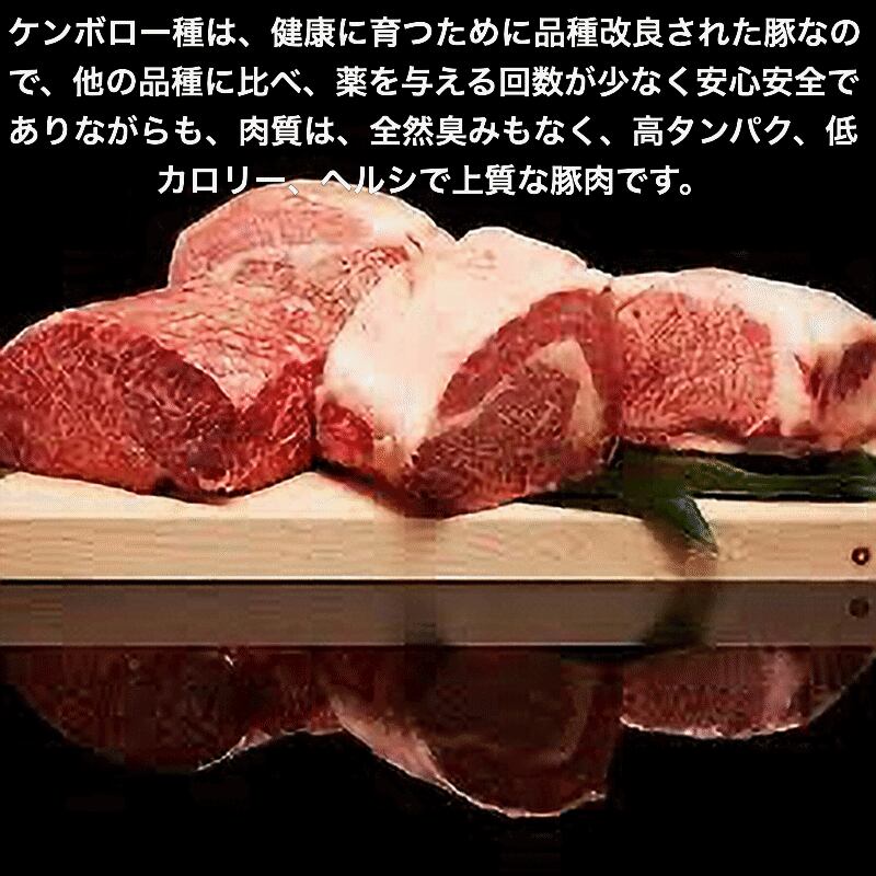 麦、米、芋を配合した100%純植物性飼料を使用、大自然の懐でミネラル分豊富な天然水と、農家の人々の細やかな愛情により、大切に育てられたケンボロー豚は、日本で出荷されている豚肉のうち、約6%しか流通していないという希少な豚肉です。