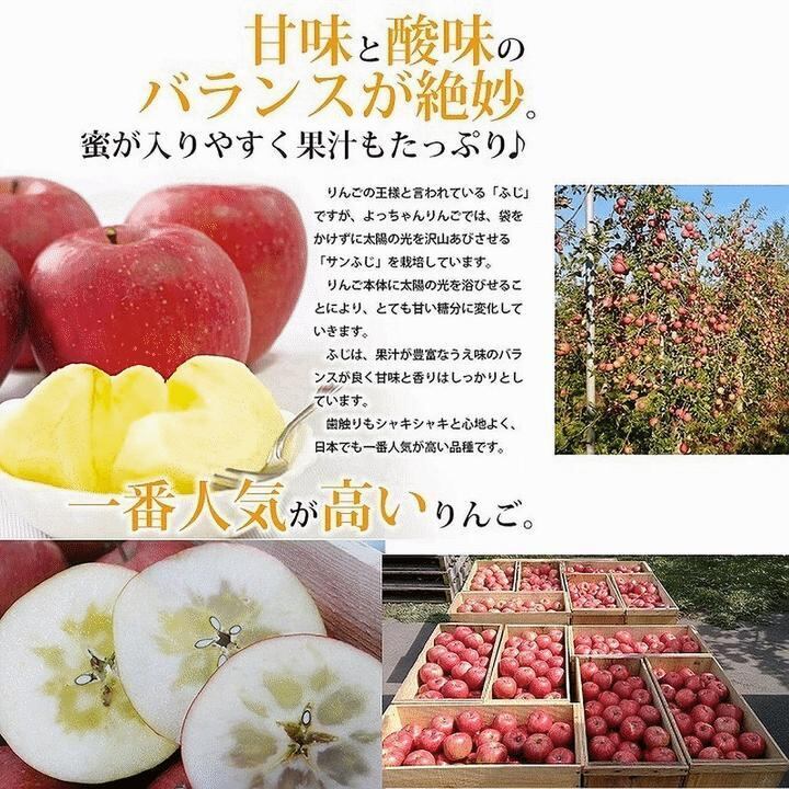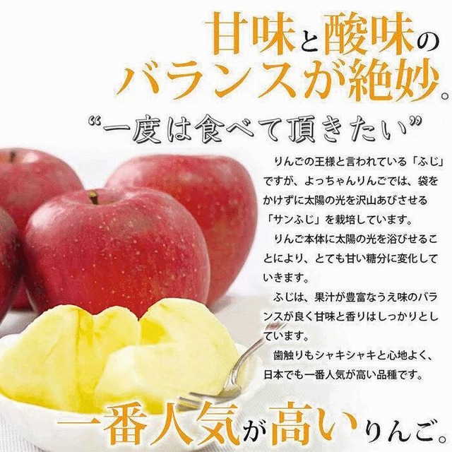 ふじは、果汁が豊密なうえ味のバランスが良く甘味と香りはしっかりとしています。