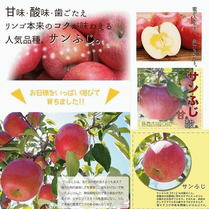 サンふじとは、見た国の色の良さよりもあえて食べた時の美味しさを重視し、袋をかけないで合ったふじりんご、無効なので多少表皮が流れますが、ビタミン・ミネラルも豊富になり、りんご本来の豊満でコクのある味になります。