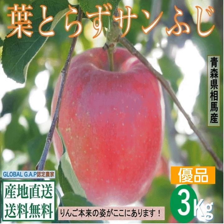 早期予約販売 りんご 果物 青森県津軽産りんご【葉とらずサンふじ】優品 3Kg/箱【送料無料】
