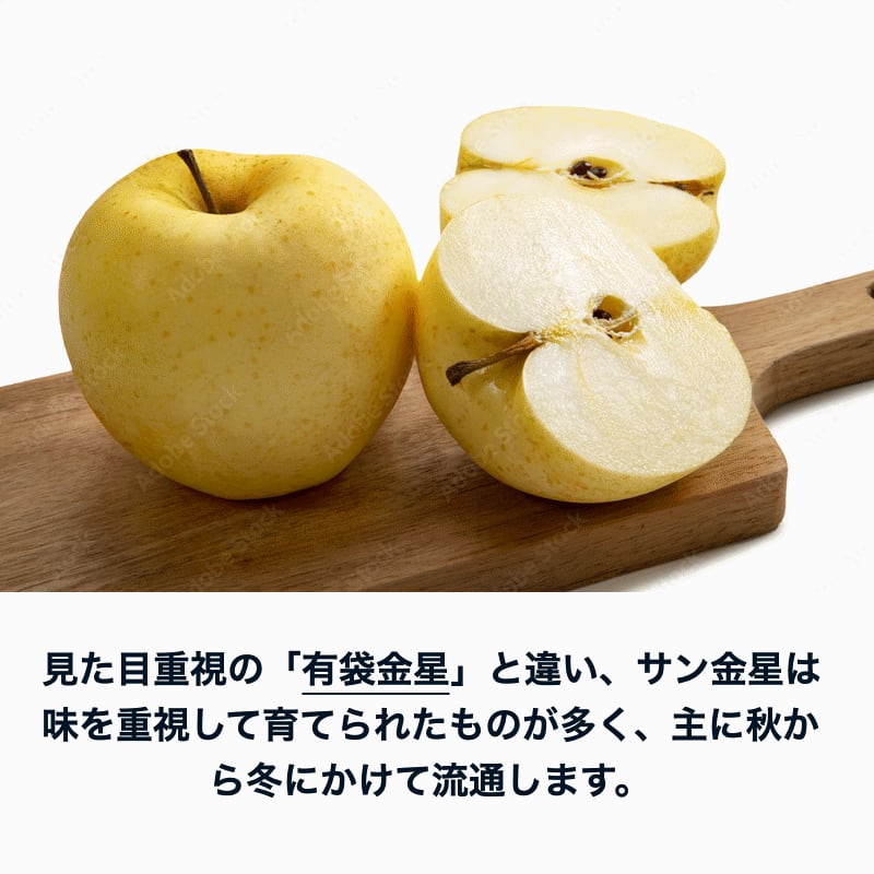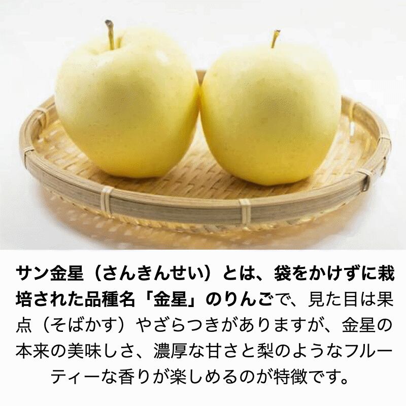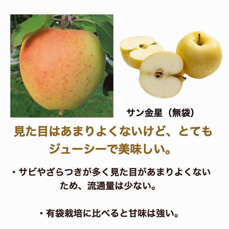 サン金星とは、りんごの「金星」という品種を袋をかけずに(無袋で)栽培したものです。