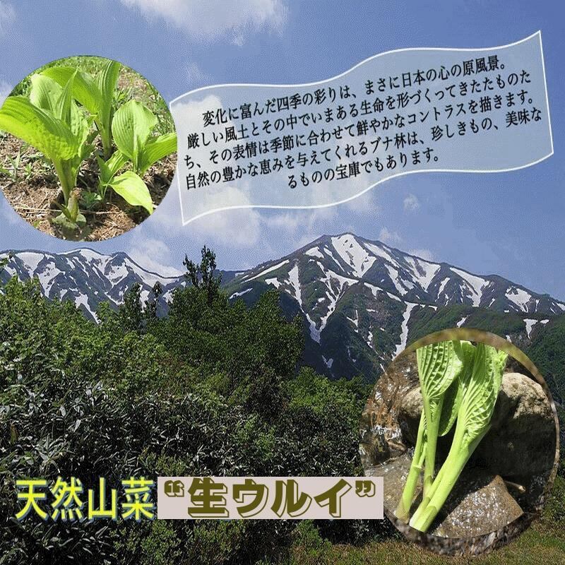 山形県「飯豊連峰」の雪に耐え風雨に耐え、大自然のミネラルをたっぷり吸収した「本物」の天然ものだけが持つ「濃い」味、コク、風味等は全く他と比較になりません。