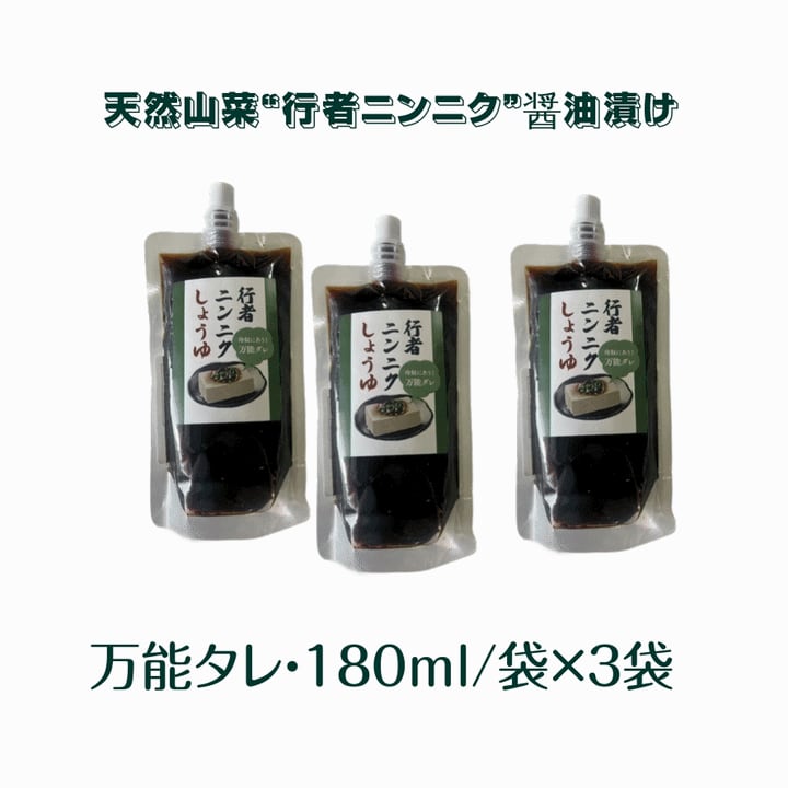天然山菜行者ニンニク 醤油漬け 180ml/袋 万能ダレ 送料無料