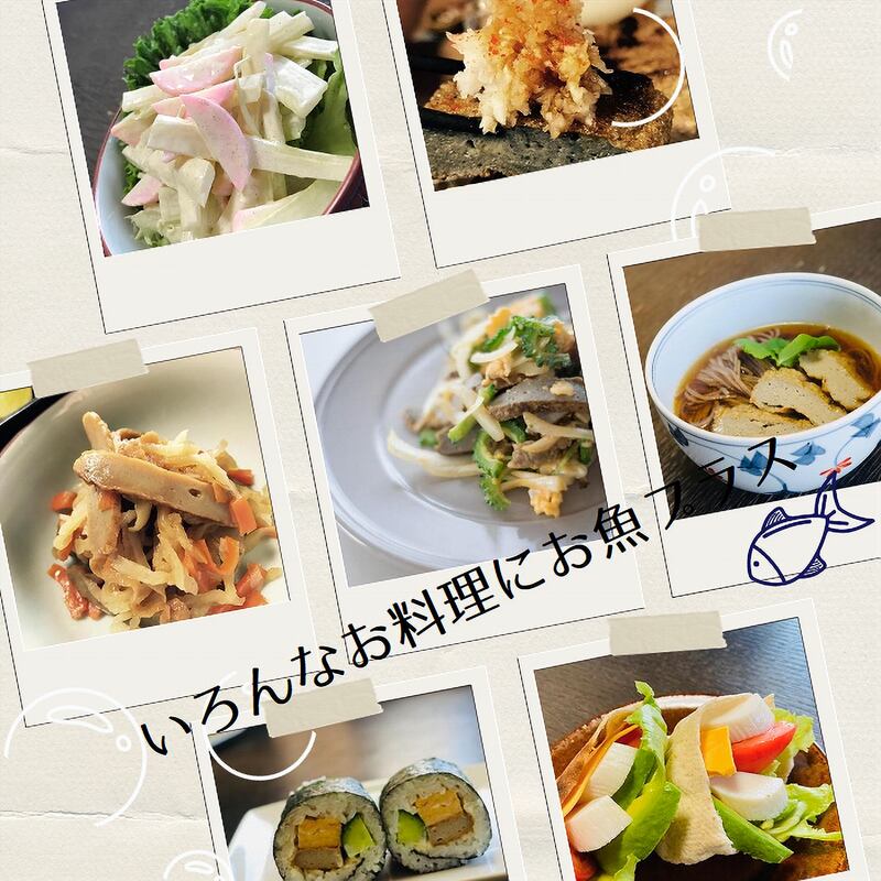 ■原材料名:魚肉(国産)、でん粉、卵白(卵を含む)、食塩、砂糖、発酵糖調味料、植物油調味料(アミノ酸等)、トレハロース、保存料(ソルビン酸)