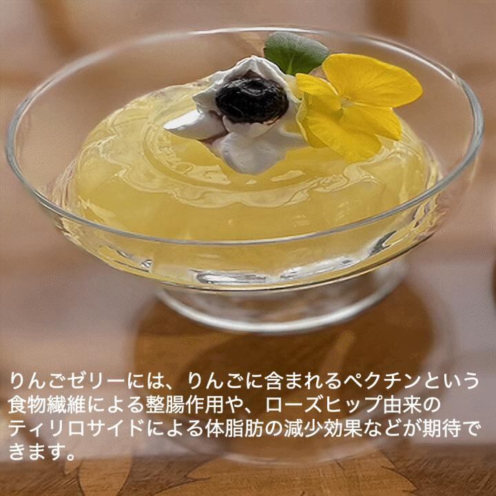 りんごゼリーには、りんごに含まれる食物繊維のペクチンによる次のような効用が期待できます。